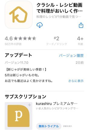クラシルアプリをインストールした。